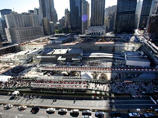 В пятую годовщину терактов Нью-Йорк стремятся посетить многочисленные туристы. Люди из разных стран мира приезжают в южную часть Манхэттена, приносят живые цветы и свечи к ограде вокруг котлована, образовавшегося на том месте, где стояли башни-"близнецы".