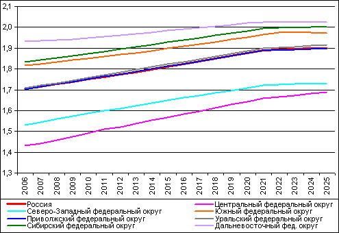 Но при благоприятном развитии событий поколения матерей 1980-х — 1990-х годов рождения, которые будут определять ситуацию с уровнем рождаемости в первые два десятилетия XXI века, смогут повторить опыт своих родителей и произвести на свет в среднем 1,7-1,9 ребенка. Поэтому в качестве верхней планки коэффициента суммарной рождаемости к 2021 можно принять значение показателя на уровне 1,89 (таким этот показатель был в 1980 и в 1990 годах).