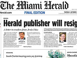 Диаз также ушел с поста президента Miami Herald Media Co, передает АР. "Я осознаю и сожалею, что события последних трех недель создали атмосферу, которая не позволяет мне более руководить нашими газетами так, чтобы это приносило наибольшую пользу самим газетам, читателям и обществу", - написал Диаз в письме читателям.