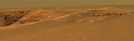 "Я очень рад снова увидеть наш марсоход, - говорит Стивен Сквайрс (Steven Squyres) из Корнеллского университета (Cornell University, Итака, штат Нью-Йорк), осуществляющий научное руководство программой марсианских роверов Mars Exploration Rover (MER). - Я должен сказать, что момент, когда я увидел изображение небольшого вездехода на краю утеса, дошедшее до нас с расстояния в 200 миллионов миль [свыше 300 миллионов километров, что в 2 раза превосходит расстояние от Земли до Солнца], станет одним из самых волнующих воспоминаний за все время моего участия в планетарной программе… это действительно прекрасно!"