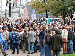 Люди почтили память журналиста Анны Политковской на пикете, который начался в 12 часов. В акции приняли участие журналисты Виктор Шендерович, Владимир Позднер, Сергей Пархоменко, Евгения Альбац, депутат Госдумы Владимир Рыжков, лидер НБП Эдуард Лимонов, лидер СПС Никита Белых, зампред "Яблока" Сергей Митрохин и многие другие.