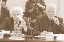 61-я сессия Псковского областного Собрания депутатов началась «за здравие». Депутат Госдумы РФ от Псковской области Алексей Сигуткин торжественно вручил Борису Полозову и Виктору Антонову от имени председателя Государственной Думы России Бориса Грызлова почетные грамоты «за существенный вклад в развитие парламентаризма».