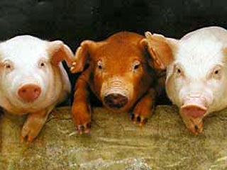 На Украине вывели новую породу свиней - красных с белой полосой на груди. Появление таких животных совпало с приходом 2007 года, который по китайскому календарю является годом Красной Свиньи.