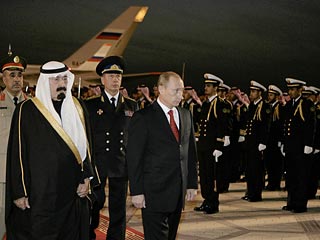 Накануне вечером президент России Владимир Путин прибыл в столицу Саудовской Аравии Эр-Рияд, с которой началось его ближневосточное турне. Путин стал первым российским лидером, посетившим эту страну. У трапа самолета президента России встречали Служитель Двух Святынь король Абдалла ибн Абдель Азиз Аль Сауд, а также два принца: принц Султан ибн Абдель Азиз Аль Сауд и принц Сальман ибн Алдуль Азиз Аль Сауд. Вместе с российским президентом в Эр-Рияд прибыли: глава МИД Сергей Лавров, министр транспорта Игорь Левитин, глава Татарстана Минтимер Шаймиев, руководитель Федерального агентства по культуре и кинематографии Михаил Швыдкой, директор Федеральной службы по военно-техническому сотрудничеству Михаил Дмитриев.