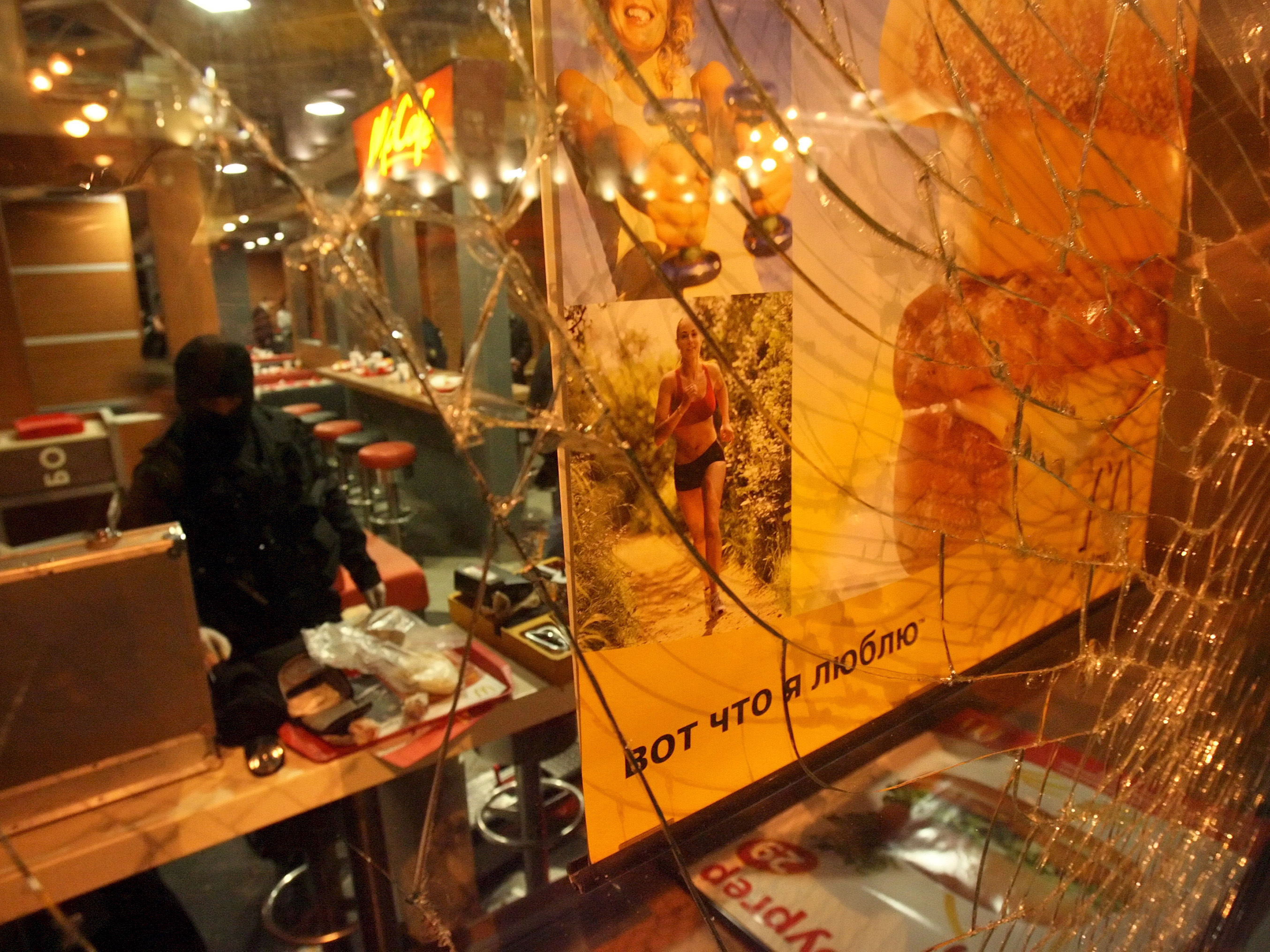 В Санкт-Петербурге продолжается расследование взрыва в ресторане «Макдональдс», в результате которого вчера вечером были ранены шесть человек. Сегодня утром стали известны данные предварительной взрывотехнической экспертизы, установившей, как сообщает РИА Новости, что вчера около 20:30 вечера в кафе «Макдональдс» на углу Невского проспекта и улицы Рубинштейна сработало самодельное взрывное устройство, содержавшее поражающие элементы, его мощность составила примерно 75 граммов в тротиловом эквиваленте. По факту взрыва возбуждено уголовное дело по статье «Покушение на жизнь двух или более лиц, совершенное общеопасным способом». Основная версия - хулиганство. Также существует предположение, что взрыв могла совершить одна из радикальных группировок города, например, антиглобалисты, выступающие против распространения американского образа жизни. На месте продолжает работать сводная оперативно-следственная группа. Идет проверка всех кафе быстрого питания в городе, поскольку поступили сообщения о том, что в некоторые из них заходили группы подозрительных молодых людей, но, когда на них обращала внимание охрана, они сразу же уходили.