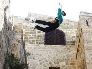 "Паркуристы" пересекли Тель-Авив с севера на запад – по крышам домов, через заборы, совершая головокружительные прыжки. Спортсмены стартовали в 6:30 с берега реки Яркон (район Бавли в северном Тель-Авиве) и успешно завершили свой маршрут в крепости над портом старого Яффо спустя два часа, сообщает NEWSru Israel. Город, который для обычного человека состоит из зданий, парков, дорог и тротуаров, превратился на несколько часов в огромную игровую площадку "паркуристов".