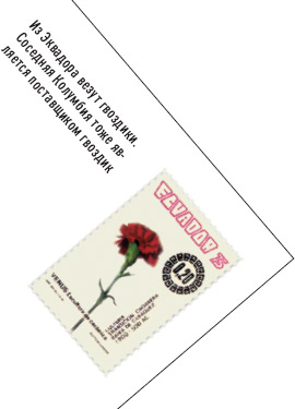Ирисы и гвоздики приходят из Испании, Турции и Израиля. Тот же Израиль поставляет зелень для украшения букетов, а Турция — еще и герберы. Эквадор и Колумбия везут крупные розы и гвоздики. Разнообразная экзотика — антуриумы, орхидеи — выращиваются в Южной Африке.