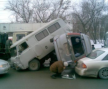 В Новосибирске на светофоре 18-тонный автокран раздавил 17 автомобилей