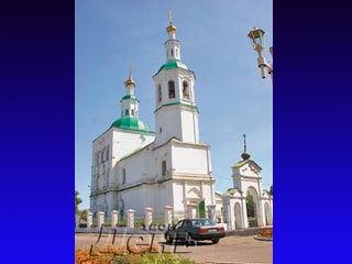 Спасский собор - памятник церковного зодчества второй половины XVIII века, единственное в Омском Прииртышье каменное культовое сооружение стиля сибирского барокко. Собор находится в южной части исторической застройки Тары и является архитектурной доминантой. Строительство Спасского собора в Таре было начато в 1755 году, а закончено в 1776 году. Она сложен из большемерного кирпича на известковом растворе. Толщина стен первого этажа 165 см, второго-133 см. Общая высота более 40 метров.