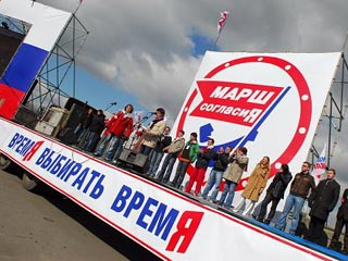 "Марш согласия" был проведен в противовес оппозиционному "Маршу несогласных". Наша политика - это свобода, мы за суверенную демократию, против марша несогласных", - заявил на митинге член федерального политсовета "Молодой гвардии" Игорь Ишков.