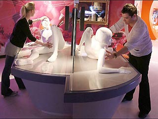 Также на выставке есть гипсовые фигуры, изображающие тела мужчин и женщин. В них можно запустить руку и попробовать нащупать "точку G" (якобы "центр удовольствия" у женщины, воздействуя на который можно добиться сильного вагинального оргазма) или предстательную железу. "О, да!" - одобрительно говорят фигуры, когда посетитель прикасается к нужному месту.