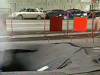 В 30-ти метрах от места провала находится смотровая площадка на Воробьевых горах. По словам Михайлова, на трехполосной улице Косыгина в данный момент перекрыты фактически все полосы. "Здесь организовано интервальное движение машин: они стоят по 5-6 минут, потом их пропускают. В результате на месте образуется небольшая пробка", - сказал Михайлов.