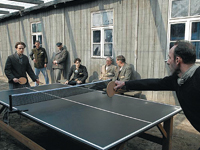 Экзистенциальный кошмар выражается не столько канонадами расстрелов, которые ежедневно доносятся до изолированных героев, сколько показом того, как узники играют в пинг-понг, подаренный им для предсмертного досуга, как их заставляют в новогоднюю ночь танцевать друг с другом и, изображая женщин, петь песни в духе «Лили Марлен». Эти подробности «нормы» в аду действуют сильнее, чем сцены смерти и унижений, которых в «Фальшивомонетчиках» минимум.