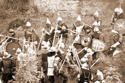 А посмотреть, между тем, действительно было на что: с треском сталкивались щиты, сверкали на солнце мечи, падали пораженные воины. Впрочем, падали, надо отметить, крайне неохотно: по правилам поединка, воин добровольно «отправлялся в Валгаллу», получив не менее трех ударов. Однако секундантам, пристально следившим за ходом боя, то и дело приходилось буквально убеждать очередного разгоряченного битвой ратника: «Падай, падай!!! Ты убит!!!»