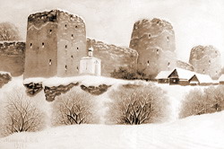 12Такое почитание художника теми, кто видел его картины, естественно и закономерно. Повезло Изборску с певцом его красоты, мощи, несокрушимости и пронзительной нежности. Изборск на холстах Мельникова – теплый и до боли родной. Каждый изборянин, будь он художником, с удовольствием подписался бы под работами Павла Дмитриевича.