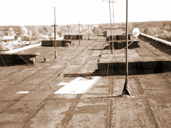 Единственный на всю крышу пятиподъездного дома трехметровый кусок рубероида «убедительно» для прокуратуры района демонстрировал «ежегодные латочные ремонты кровли», которые МУПП ЖКХ Псковского района якобы проводило в течение аж четырёх лет.