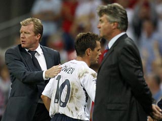 Гус Хиддинк: Сегодня мы получили очень хороший урок. Играя против англичан, нельзя транжирить столько опасных моментов. У нас явно хромала реализация. Англичане же свои моменты реализовали и забили нам три гола. Против сборной Англии надо играть уверенно, не боясь соперника. А в какой-то момент игроки средней линии немножко подсели и начали отходить назад, в то время когда я всегда говорю, что прижиматься к своим воротам нельзя. После двух проведенных замен ситуация немножко улучшилась. Англичане привыкли играть под постоянным давлением. Они проводят такие поединки практически в каждом туре своего национального чемпионата. Для российских футболистов это был очень тяжелый матч. У нас есть время, чтобы сделать работу над ошибками перед ответной игрой в Москве. В любом случае, судьба нашей сборной решится именно в нем.