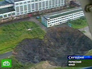 "Провал увеличивается за счет оползания рыхлых отложений и насыпных грунтов, захватывает центральную часть пустыря и приобретает все более сложную форму", - сообщает оперативный штаб при комиссии по чрезвычайным ситуациям Пермского края.