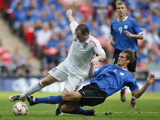 Игра между фаворитами группы Е и ее аутсайдером состоялась на лондонском стадионе "Уэмбли" и завершилась со счетом 3:0 в пользу хозяев. Голы до перерыва забивали полузащитник "Челси" Шон Райт-Филлипс, нападающий "Манчестер Юнайтед" Уэйн Руни, еще один мяч эстонцы занесли в собственные ворота. Для Руни этот гол стал первым в официальных матчах за сборную с 2004 года.