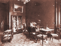 | Одно из помещений Зимнего дворца после штурма, конец октября 1917 года |