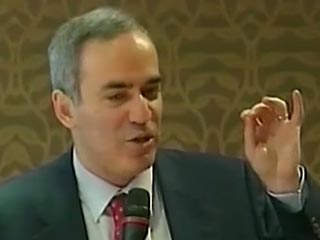 "Наблюдая за его галантной встречей с президентом Путиным (в октябре в Москве), я увидел, что он следует по стопам Берлускони, Ширака и Шредера", - сказал на пресс-конференции бывший чемпион мира по шахматам.