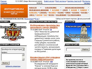 Создатель и владелец оппозиционного властям Ингушетии сайта "Ингушетия.Ru" адвокат Магомед Евлоев, на которого в последнее время оказывается сильное давление со стороны родственников, работающих чиновниками в различных структурах власти Ингушетии, отказался от управления этим ресурсом, передав его редакционной коллегии, которую возглавляет известный в Ингушетии правозащитник Ибрагим Костоев, пишет газета "Коммерсант".