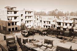 В дальнейшем в рабочий проект внесены изменения в сторону повышения этажности. Измененный проект был снова согласован главным архитектором г. Пскова Сергеем Славинским единолично. Создается впечатление, что г-н Славинский – не главный архитектор города, а так… сам себе архитектор. Проект был не согласован научно-методическим советом Госкомитета Псковской области по культуре и туризму. Но это не привело к неизбежной в таких случаях остановке работ. Нарушения в проектировании почти те же: несоответствие согласованного господином Славинским проекта режиму охранной зоны исторического центра г. Пскова. Режим высоты новой застройки на данном участке установлен регламентом до 8 м. Где там, высота уже выражается двузначной цифрой.