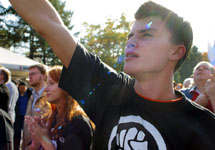 На площади также появился лидер "России молодой" депутат Госдумы Максим Мищенко. Он сказал, что "Каспаров хочет развалить Россию по оранжевому сценарию на деньги США" и пообещал провести вечером 2 марта пикет на Лубянке.