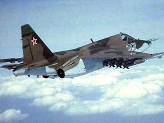 Штурмовик Су-25 создан в ОКБ имени Сухого. В начале 1980-х годов успешно прошел испытания и был рекомендован к принятию на вооружение. Максимальная скорость полета у земли - 975 километров в час. На вооружении Су-25 находятся пушки калибра 23 миллиметра и 30 миллиметров, управляемые ракеты класса воздух-воздух, неуправляемые ракеты, бомбы, в том числе и с лазерным наведением.