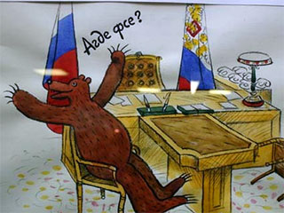 Безобидных рисунков на выставке почти не оказалось, зато было много ироничных, почти издевательских. На работе Николая Воронцова "Не садись на газопровод, не ешь пирожок" можно было увидеть медведя в буденовке с красной звездой, несущего через русско-украинскую границу девицу, напоминающую премьер-министра Украины Юлию Тимошенко, отмечает "Коммерсант".