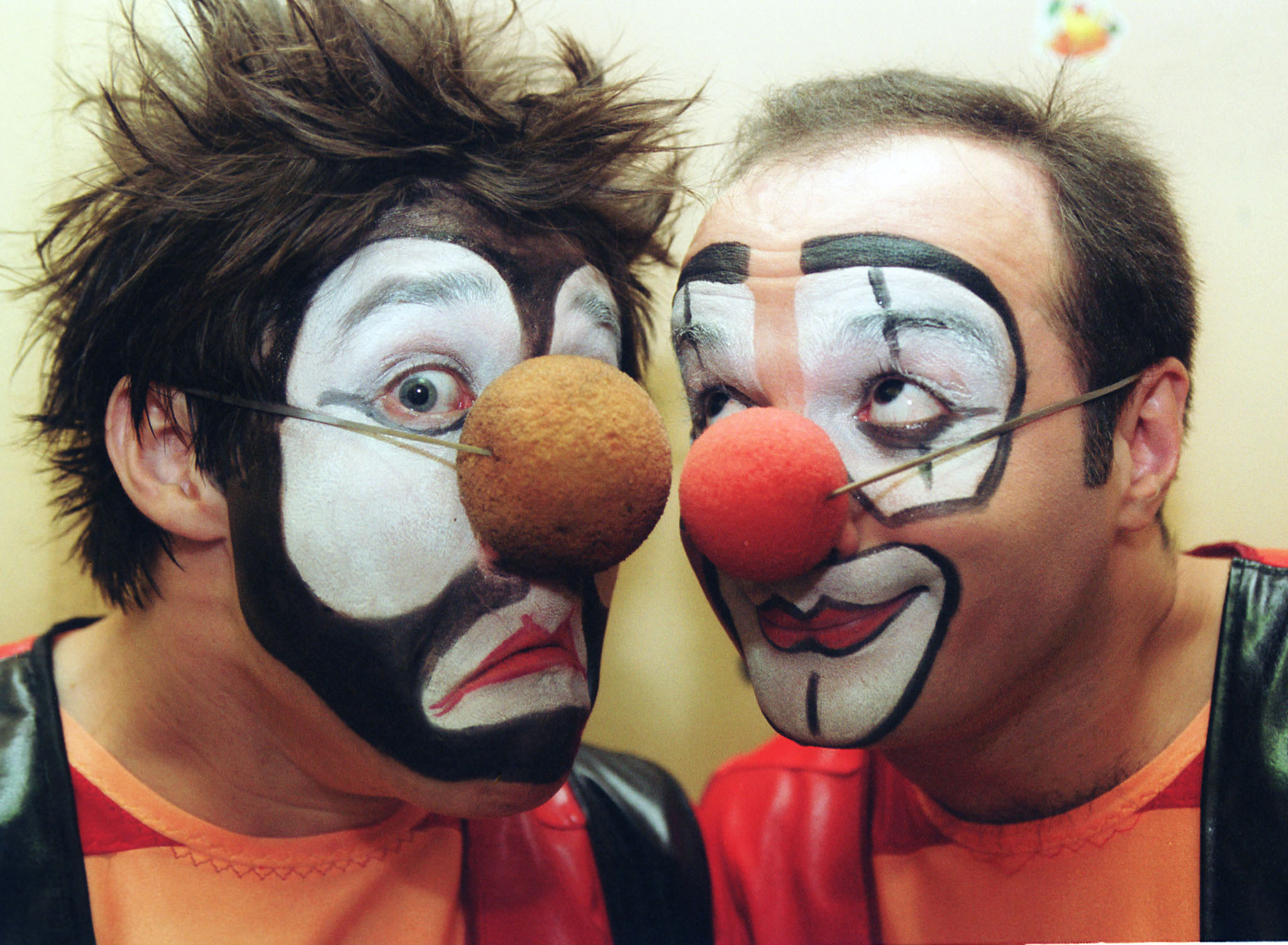 Представление, рассчитанное по сценарию на два часа, идет уже четыре. Перемазанные румянами щеки, красные пенопластовые носы, огромные ботинки, яркие пиджаки, штаны на лямках. Заместитель директора компании «Росгосцирк» Александр Калмыков хохочет в первом ряду: «Я думаю, что Москва, в которой я служу, никогда такого зрелища не видела! Чтобы Ларибль и Дэвид Шайнер вместе! Они никогда в одной программе не встречались!»