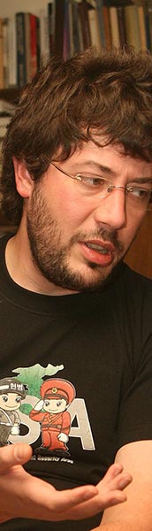 Артемий Лебедев (фото Наташи Четвериковой)Артемий Лебедев. – Две истории есть – хардверная и софтверная. Хардверная история принадлежит провайдерам, она имеет длинные корни и, во-первых, она неинтересная, во-вторых, о ней мало кто знает. Были какие-то «демосы», какие-то люди, которые клали кабели, какие-то «Совам-телепорт», которые потом стали «РосТелекомом», и прочие скучные организации, которые привыкли думать, что провода — это самое главное, а то, что идет по этим проводам - просто какая-то услуга, за которую иногда можно брать деньги. Эти люди действительно считали, что носитель всегда дороже того, что с его помощью можно передать. Кстати, провайдеры только в середине 90-х обнаружили, что есть сеть www в виде паутины и браузеров — потому что интернет существовал уже давно — а в том виде, в котором он сегодня существует и в котором завоевал популярность, он обязан появлению браузера, т.е., того, что изобрел Тим Бернерс-Ли (знаменитый британский учёный, изобретатель URI, URL, HTTP, HTML, изобретатель Всемирной паутины и первого браузера - «Полит.ру»). Хотя он тоже это изобрел по ошибке, не зная, что это обретет такую популярность и что из этого получится такая большая интересная история. Точно также не думали и провайдеры, что то, что будет по их проводам передаваться, когда-нибудь станет важнее их проводов.