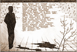 На рисунках, которые нельзя было посмотреть в воскресенье – пустые бетонные города без солнца. Бескрайние степи, где в снегу тонут сбившиеся в жалкие кучки домишки. Люди с бескровными лицами. Корчащиеся тела и скрюченные деревья. Должны были прозвучать, но не прозвучали отчаянные и злые стихи о жизни в стране, в которой нет свободы, нет будущего, нет смысла. Общее название – «Тюрьма, безумие, равенство и справедливость». Автор рисунков и стихов – Наталья Чернова. Молодая девушка, художница и поэтесса. Член запрещенной национал-большевистской партии. Бывшая политзаключённая.