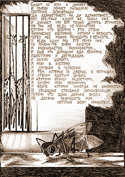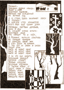 Поэтому – умолкаю, оставляя больше места для изображений. Выставку запретили, газета выходит. И хотя репродукции не в состоянии передать того ощущения, которое переживаешь, беря в руки лист тюремного альбома, изрисованный чёрной шариковой ручкой – делаю, что могу.