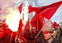 В Москве активисты Авангарда красной молодежи и группа москвичей, выступающих против точечной застройки, на несколько минут перекрыли Тверскую улицу, передает Газета.Ру. Как рассказал лидер АКМ Сергей Удальцов, после этого инициативная группа из 100 человек направилась к мэрии, пытаясь передать петицию с требованием запрета данного вида строительства, но на участников акции напал ОМОН.