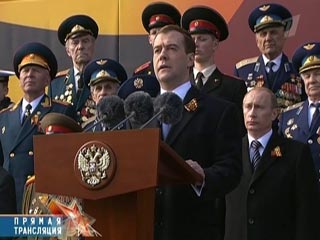 "9 мая - это особый для нашего народа праздник. Другого такого, столь великого, сколь и выстраданного, у нас, пожалуй, не найти. И в то же время это самый светлый, радостный и объединяющий праздник. День единства разных поколений - под знаменем исторической победы", - сказал Медведев.