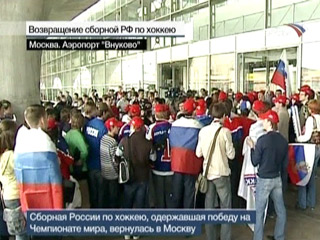 Сборная России по хоккею привезла в Москву главный трофей мирового первенства. Чартерный рейс из канадского Квебека с нашими хоккеистами во вторник днем приземлился в столичном аэропорту "Внуково".