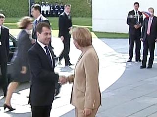 Меркель встретила Медведева перед ведомством федерального канцлера. К приезду президента РФ здесь были подняты государственные флаги двух стран, а также выстроен почетный караул. Лидеры поприветствовали друг друга и поднялись на подиум. Оркестр исполнил гимны России и Германии, после чего президент и канцлер прошли вдоль строя почетного караула. Затем Меркель пригласила Медведева в свой рабочий кабинет, где и начались переговоры лидеров. Позднее беседа продолжится с участием членов делегаций двух стран.