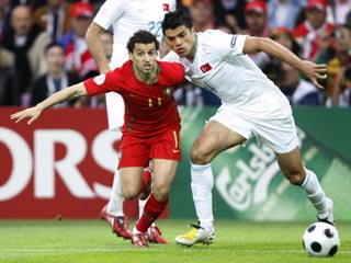 Первую половину встречи значительно лучше провели португальцы. Атакующие игроки команды Фелипе Сколари охотно шли в обводку, при этом, стараясь не затормаживать развитие комбинаций, импровизировали, пытались придумывать нестандартные решения. Оборона турецкой сборной в первые 45 минут играла под серьезной "нагрузкой", но умудрилась сохранить свои ворота в неприкосновенности.