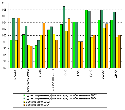 Процесс сокращения доли занятых в образовании, культуре и науке затронул в 1991-1997 годах только федеральные города с максимальной занятостью в науке, особенно Москву. Во всех остальных регионах доля занятых в бюджетных отраслях (образовании, культуре и здравоохранении) росла. Эти отрасли, несмотря на крайне низкую заработную плату, стали «убежищем» и для мигрантов из стран СНГ, и для местного населения в условиях ухудшения ситуации на рынке труда. Самым значительным структурным ростом занятости в отраслях социальной сферы отличались районы наибольшего притока мигрантов (Северный Кавказ и Центральное Черноземье) и наиболее проблемный Дальний Восток.