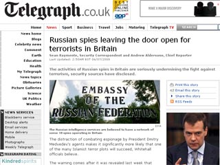 Вслед за своими коллегами из других британских изданий, опубликовавших на минувшей неделе подобные статьи, журналисты Sunday Telegraph со ссылкой на анонимные источники на Уайтхолле сообщают о том, что "российские шпионы оставляют открытой дверь для террористов в Великобритании".