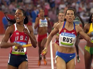 После первого этапа наши спортсменки бежали третьими, но за следующие два этапа россиянки опередили и сборную Ямайки, и команду США. На последние 400 метров дистанции Анастасия Капачинская ушла первой, но на финишной прямой ее все же обошла американка Сане Ричардс, для которой эта дистанция является коронной.