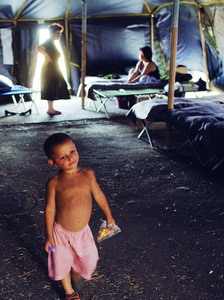Тбилиси. Беженцы. Самый большой центр для беженцев находится на территории бывшего госпиталя. Огромное девятиэтажное здание предназначено под снос, нет воды, нет туалетов. В здании сейчас живут более 1500 жителей, все в основном из деревень возле Цхинвали. Большинство из них знают, что их домов уже нет, и не верят, что когда-либо смогут вернуться: попасть туда можно только через Цхинвали. Почти все грузинские деревни граничили с осетинскими, и все люди в один голос говорят о том, как дружно жили. Во время войны 92–93 годов грузины прятали у себя осетинов. И в эту войну осетины в Цхинвали до сих пор прячут у себя в подвалах грузин, что остались в городе.
