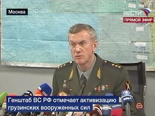 Замначальника Генштаба ВС РФ Анатолий Ноговицын на ежедневном брифинге рассказал, что на границах Южной Осетии сосредоточено около тысячи грузинских военных, НАТО помогает Грузии восстанавливать инфраструктуру аэродромов и наращивает группировку кораблей в Черном море. Также, подчеркнул генерал, Грузия планировала захватить Южную Осетию за сутки.