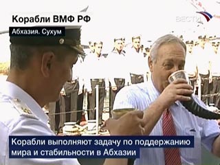 "Мы в будущем сделаем так, чтобы корабли Черноморского флота могли временно базироваться у нас", - подчеркнул Багапш. Он особо отметил, что корабли российского флота впервые официально посетили уже признанную республику Абхазия. "Они прибыли по моему личному приглашению и нанесли дружественный визит, надеюсь, что не последний", - сказал глава республики.