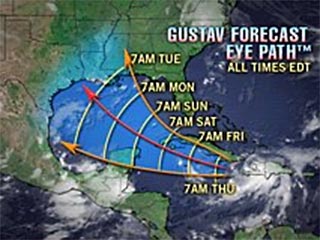 Вопреки прогнозам синоптиков, ураган "Густав", достигший первой категории опасности по международной пятибалльной шкале, усилился и теперь циклон направляется из Гаити на северо-запад, угрожая Кубе и Ямайке. Чрезвычайные меры принимаются в кубинских провинциях Гуантанамо, Сантьяго и Гранма, где эвакуируются сотни местных жителей и иностранных туристов.