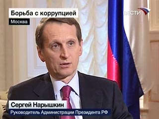 Говоря о том, сколько времени потребуется для искоренения коррупции, Нарышкин предупредил: "Мы с вами не должны быть наивными". "Борьба с коррупцией должна стать постоянной работой, не надо думать о том, что через год или полтора мы коррупцию победим", - отметил глава президентской администрации. Он напомнил, что даже в тех странах, где уровень коррупции очень низкий, в частности в Скандинавии, борьба с этим явлением идет постоянно. "Это - процесс, это - длительная системная работа, и к этому нужно подготовиться", - сказал Нарышкин.