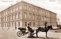 Абрам Кикоин не раз отмечал, что «и в Опочке и в первые годы во Пскове мы жили очень бедно. Настолько бедно, что в школу я пошёл только в 1924 году, десяти лет (он родился 10/23 февраля 1914 г. – Авт.), сразу в 4-й класс. До того меня не во что было одеть и обуть. Начал я учиться в еврейской школе, которая помещалась на углу Некрасовской и Сергиевской улиц, рядом с немецкой кирхой. (До революции в этом здании находилась Кирхеншуле, а сейчас в доме № 26 по улице Некрасова размещаются подразделения администрации города. – Авт.). В 4-м классе преподавание велось на русском языке. В 1925 году я поступил в 1-й класс 1-й школы второй ступени».