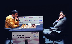 Если судить по результату, победа досталась Виши как-то уж чересчур легко. Уже к середине матча (после шести партий) он вел с перевесом в три очка, причем Крамник проиграл две партии подряд белыми, чего с ним не случалось никогда. Первый выигрыш российского гроссмейстера датируется 10-й партией, после которой счет стал 4:6, и вот тут впервые каждый из многочисленных поклонников Ананда, мысленно поставив себя на его место, заволновался: если не сделать белыми ничью на заказ, права на ошибку уже не останется. В памяти еще оставался матч Крамника с венгром Петером Леко, когда Владимир, поставленный перед необходимостью побеждать здесь и сейчас, чудесным образом провел матовую атаку в заключительной партии матча. Последствия шока, перенесенного венгерским шахматистом, ощущаются и поныне — на свой прежний уровень Леко не может выйти уже несколько лет. Кстати, в Бонне он был одним из тренеров Крамника.