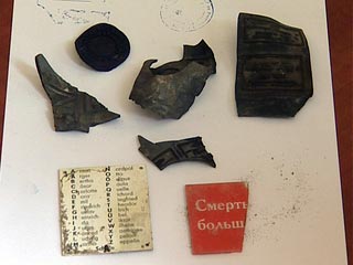 При раскопках обрушенного бункера под слоем земли поисковики нашли печати учреждений из областей СССР, которые оказались оккупированными фашистами во время войны. Среди находок - штампы заготовительного предприятия "Союзтабаксырье", Криворожского треста столовых и кафе и другие. Самая уникальная находка - подлинная гербовая печать второго отделения рабоче-крестьянской милиции города Таганрога.